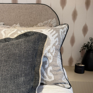 El almohadón TONGA es una pieza sofisticada por su estampado IKART, ideal para vestir nuestra cama y hacer de nuestro dormitorio un lugar irresistible.