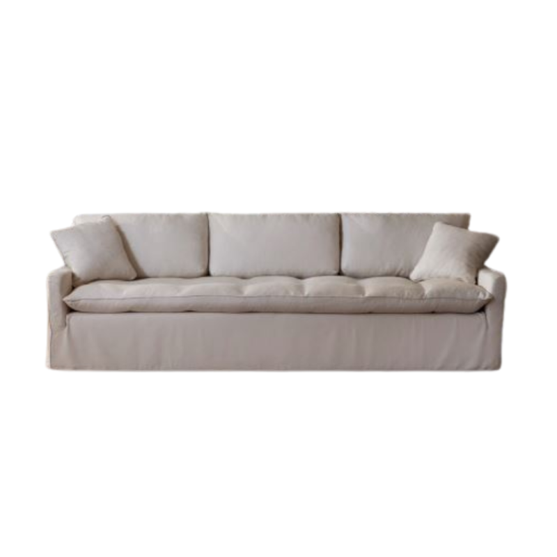 Sofá muy confortable, líneas elegantes y curvas en tejido de alta calidad, lino 100% natural. Desenfundable, puede lavarse en lavadora hasta 30º.